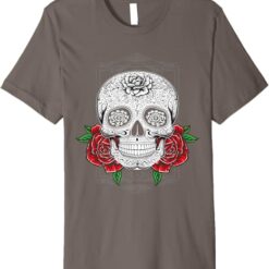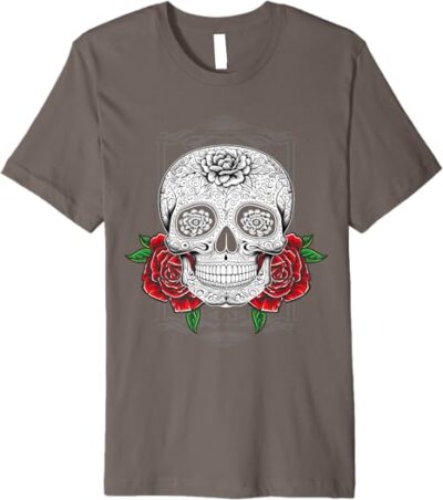 Mexican Calaveras Flower Skull Dia de los Muertos Premium Men T-Shirt – Unique Day of the Dead Design