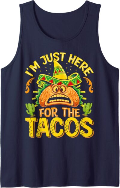 Celebrate with Style: The “Mexican Cinco De Mayo Party Just Here For Tacos” design is perfect for men and women looking to add humor and cultural flair to their Cinco de Mayo celebrations. It’s a fun and stylish way to showcase your love for tacos and Mexican culture.