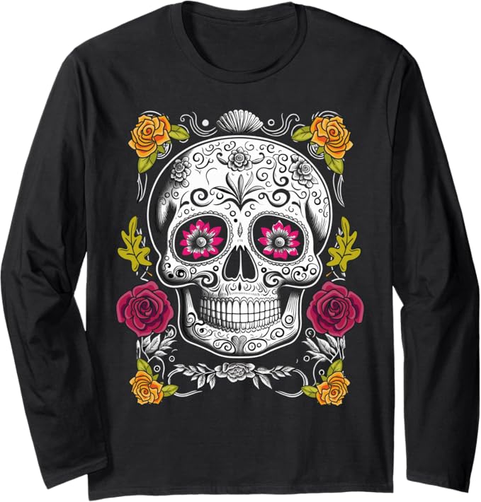Mexican Day of the Dead Sugar Skull Long Sleeve T-Shirt