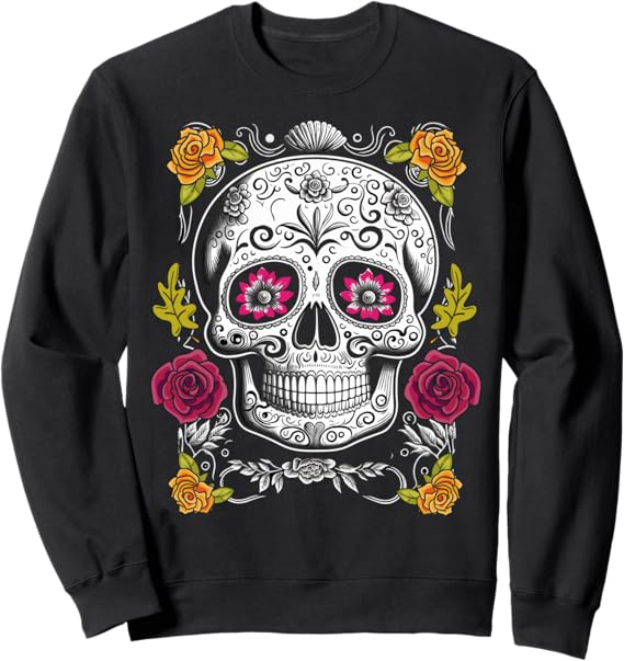 Mexican Day of the Dead Sugar Skull Sweatshirt – Stylish & Festive Apparel
