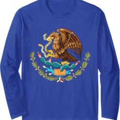 Mexican Flag Coat of Arms Aztec Eagle on Cactus Long Sleeve T-Shirt