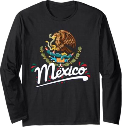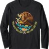 Mexican Flag Coat of Arms Long Sleeve T-Shirt with Mexico Lettering