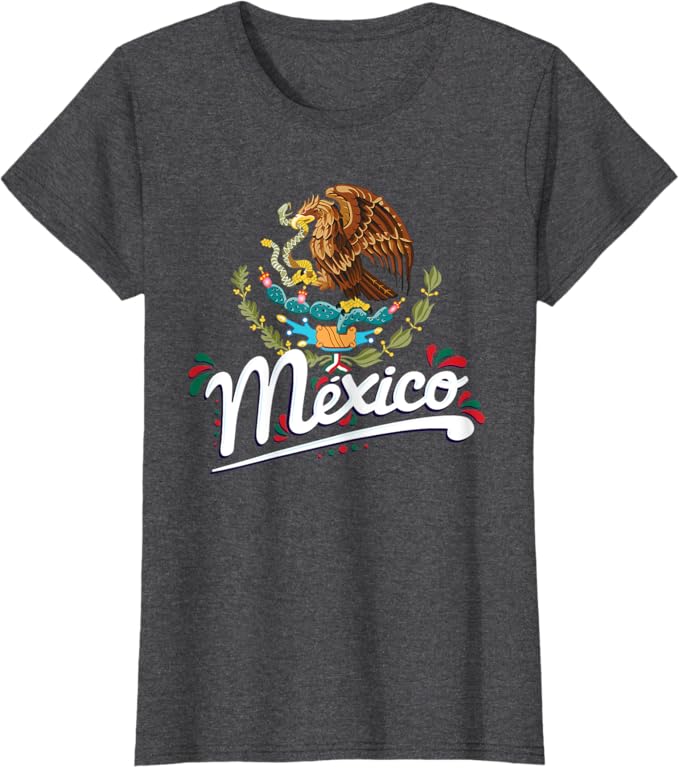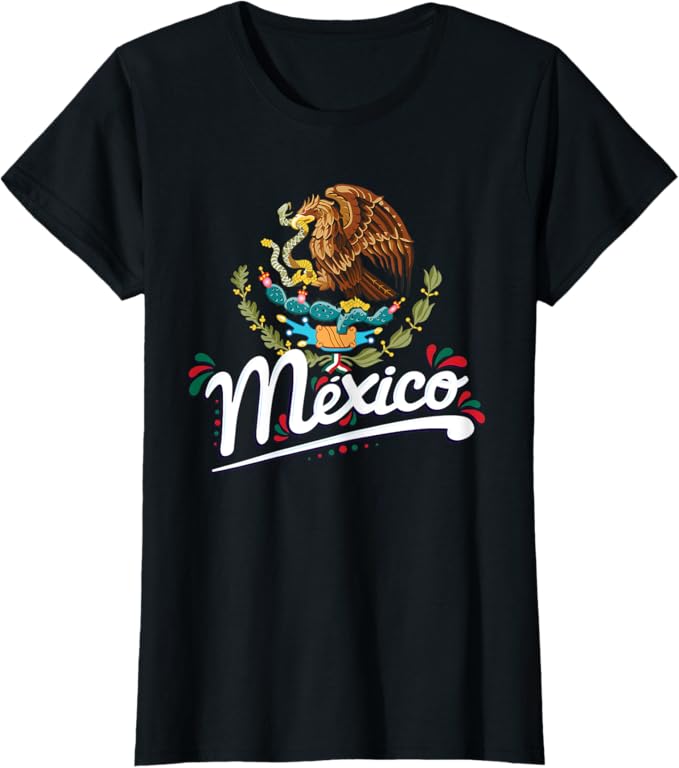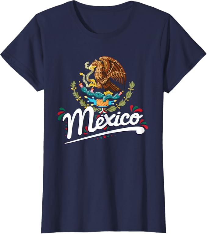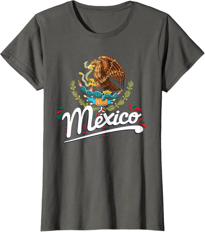 Mexican Flag Coat of Arms Women T-Shirt with Mexico Lettering – Patriotic Graphic Tee