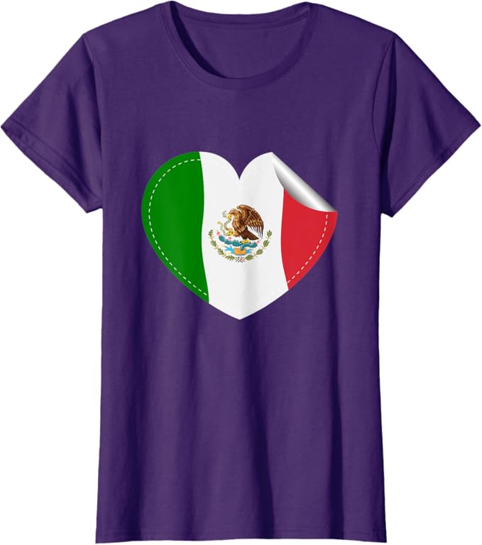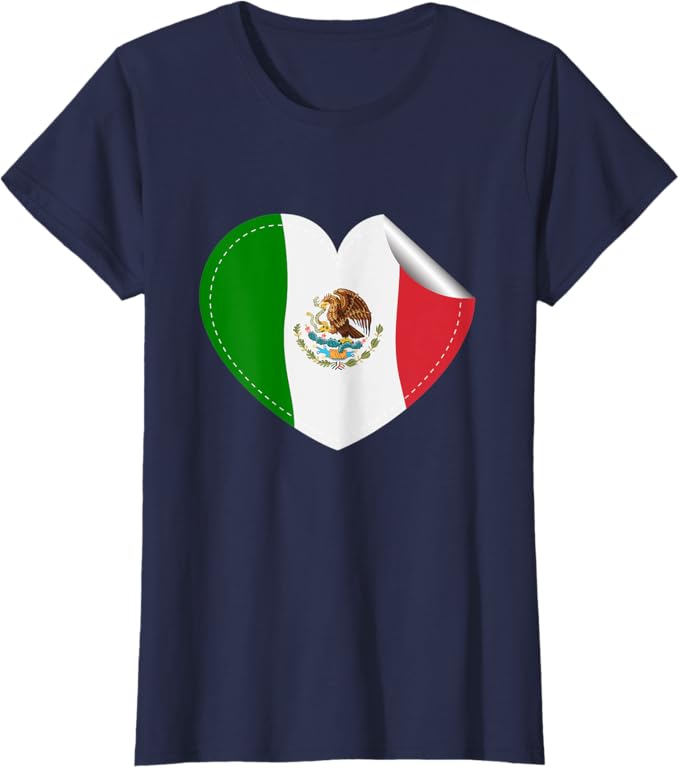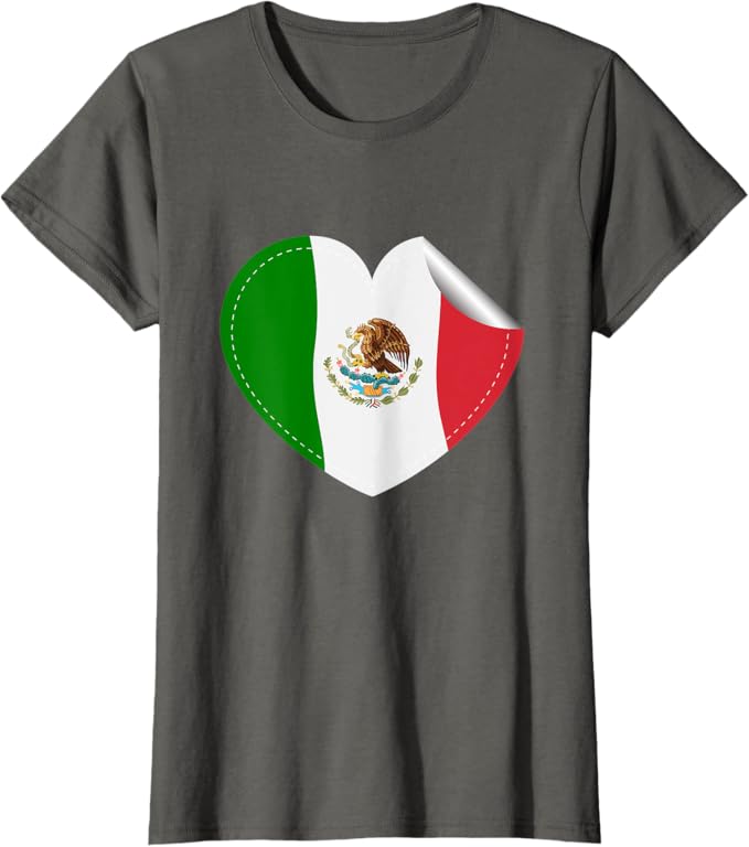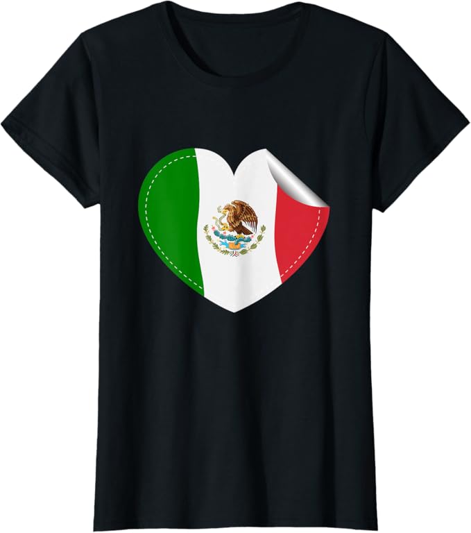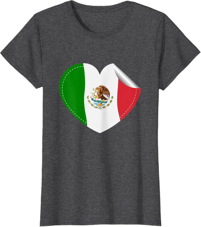 Mexican Flag Heart Women T-Shirt – Bandera de México Diseño de Corazón