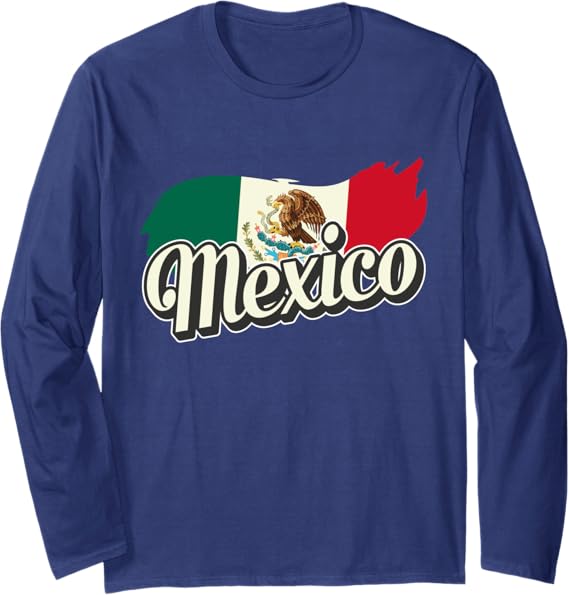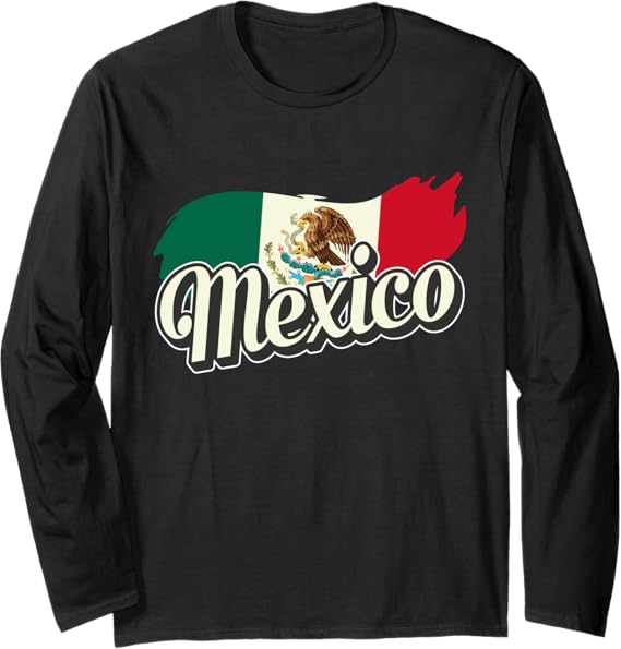 Mexican Flag Long Sleeve T-Shirt with Mexico Lettering | Bandera Mexico Shirt