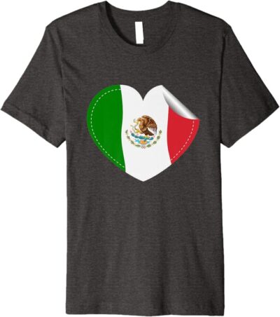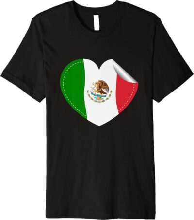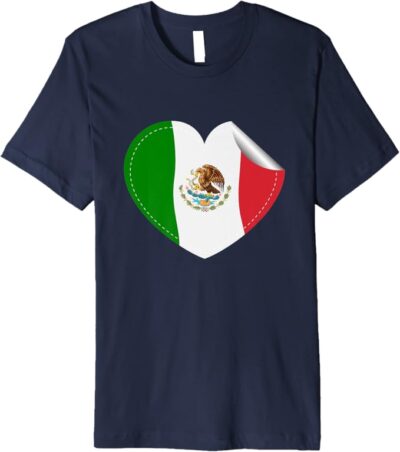 • Celebrate your love for Mexico with this stylish “Bandera de México Como Corazón” t-shirt, featuring the Mexican flag in the shape of a heart, symbolizing pride and passion for your heritage.
