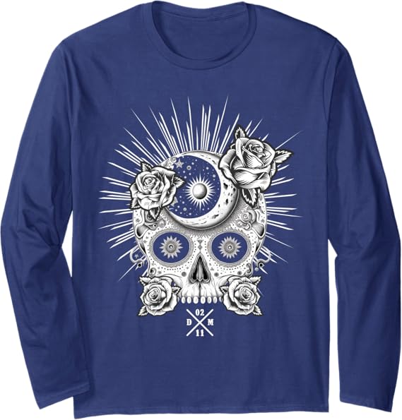 Mexican Occult Sugar Skull Dia De Los Muertos Long Sleeve T-Shirt – Halloween, Day of the Dead Shirt for Men & Women