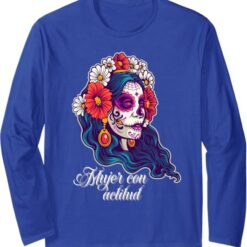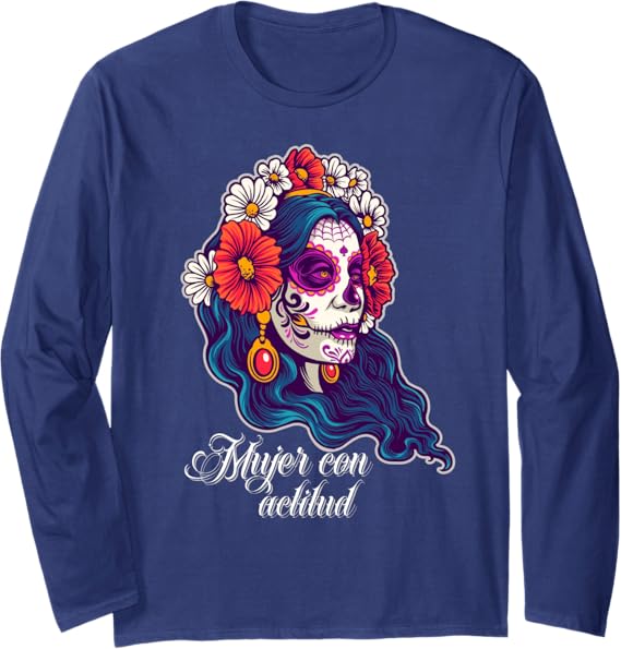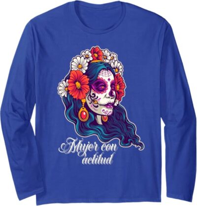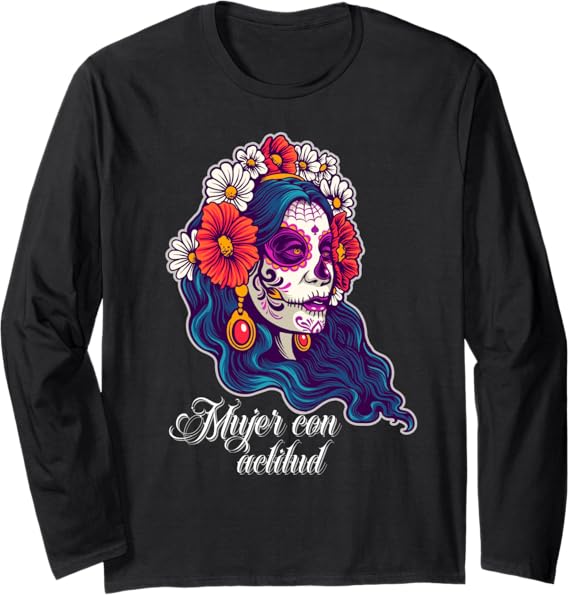 Mexican Sugar Skull Long Sleeve T-Shirt for Women and Girls – Mujer Con Actitud Design