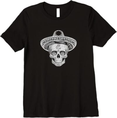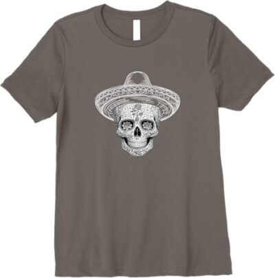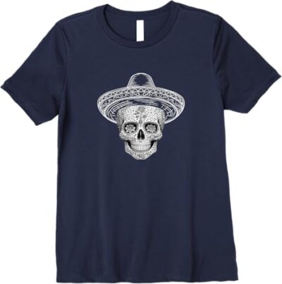 Mexican Sugar Skull Sombrero Day of the Dead Calaveras Premium Women T-Shirt