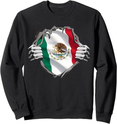 Mexican Superhero Sweatshirt with Mexico Flag & Bandera Mexicana Pride