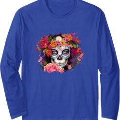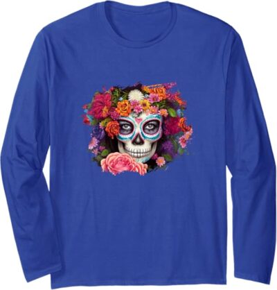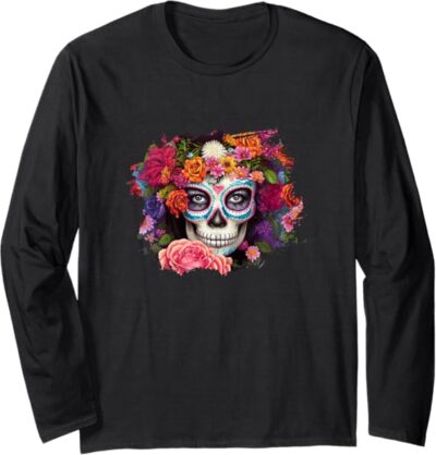 Mexico Day of the Dead Skull Dia de los Muertos Long Sleeve T-Shirt – Festive Halloween Shirt