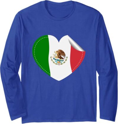 Mexico Flag Heart Design Long Sleeve T-Shirt – Bandera de México