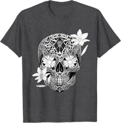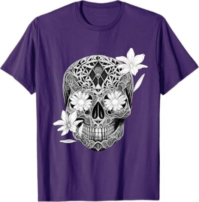 - Vibrant Sugar Skull Design: This flower-adorned sugar skull celebrates the beauty of Mexican traditions, making it a perfect choice for honoring Dia de Los Muertos with style and pride.