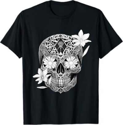 Flower Sugar Skull Men T-Shirt – Mexico Día de los Muertos Design