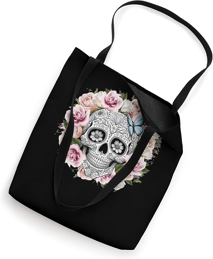 Floral Sugar Skull Tote Bag – Day of the Dead Mexico Dia de los Muertos Design