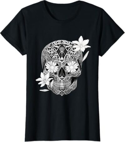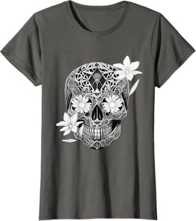 Be the first to review “Flower Sugar Skull Women T-Shirt – Mexico Día de los Muertos Design”
