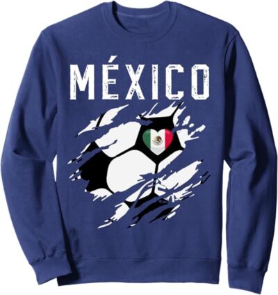 Mexico Retro Vintage Soccer Fan Sweatshirt with Mexican Flag Heart Design
