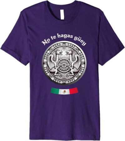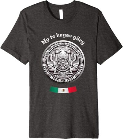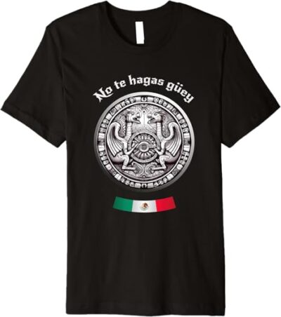 Bold and Proud Design: Featuring the phrase “No Te Hagas Güey” alongside Aztec cultural elements, this design celebrates the rich history and pride of Mexican and Chicano culture, perfect for those who embrace their heritage with confidence.
