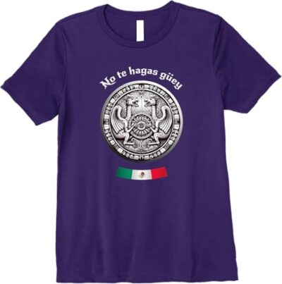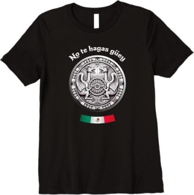 Bold and Proud Design: Featuring the phrase “No Te Hagas Güey” alongside Aztec cultural elements, this design celebrates the rich history and pride of Mexican and Chicano culture, perfect for those who embrace their heritage with confidence.