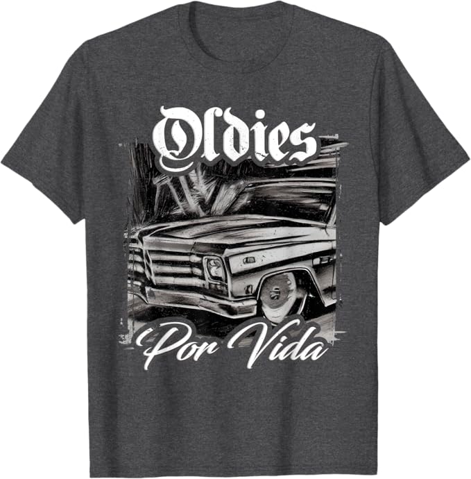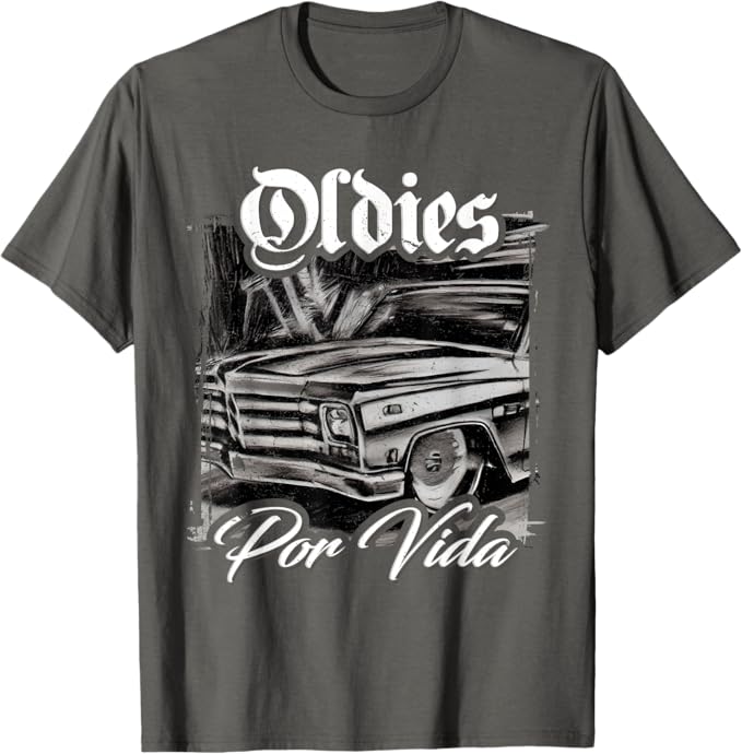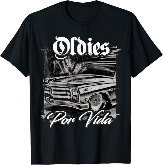 Classic Lowrider & Oldies Vibe: Featuring a vintage car design inspired by the lowrider culture, this t-shirt celebrates the timeless style of classic cars and the enduring passion for the Oldies music that defines Chicano culture.