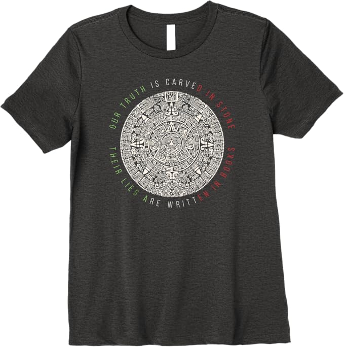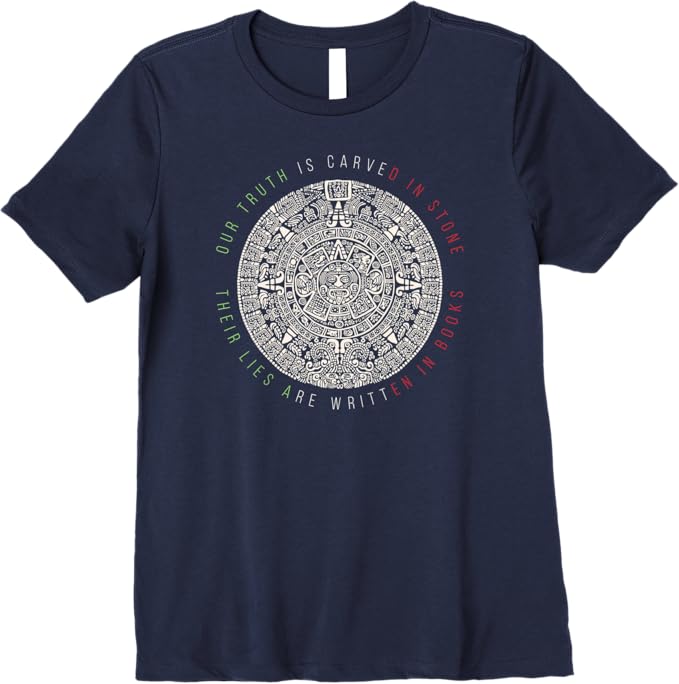 Be the first to review “Premium Mexican Aztec Mexica Calendar Women T-Shirt – ‘Our Truth Is Carved In Stone’ Design”