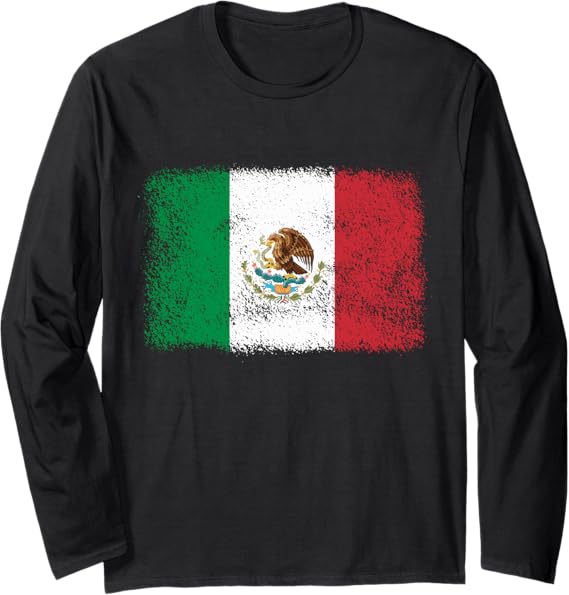 Retro Mexico Flag Long Sleeve T-Shirt – Mexican Bandera Pride Camiseta