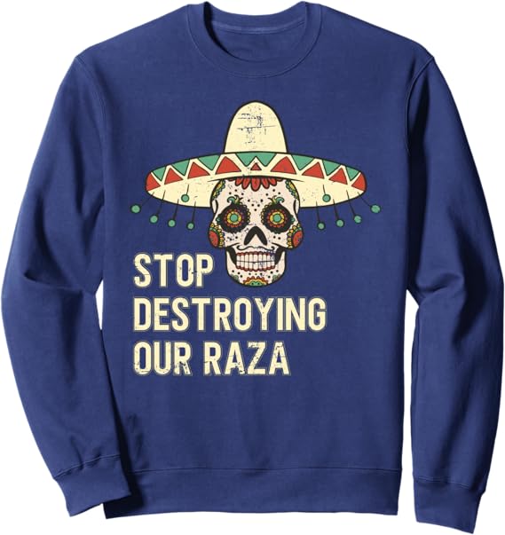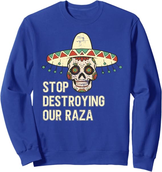 Stop Destroying Our Raza Mexican Chicano Skull Hombre Sweatshirt – Bold, Unique Design