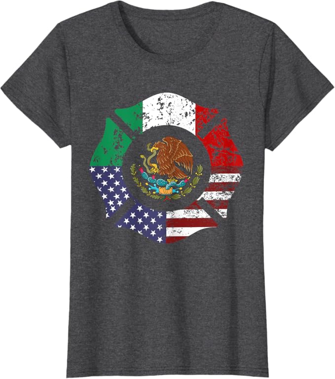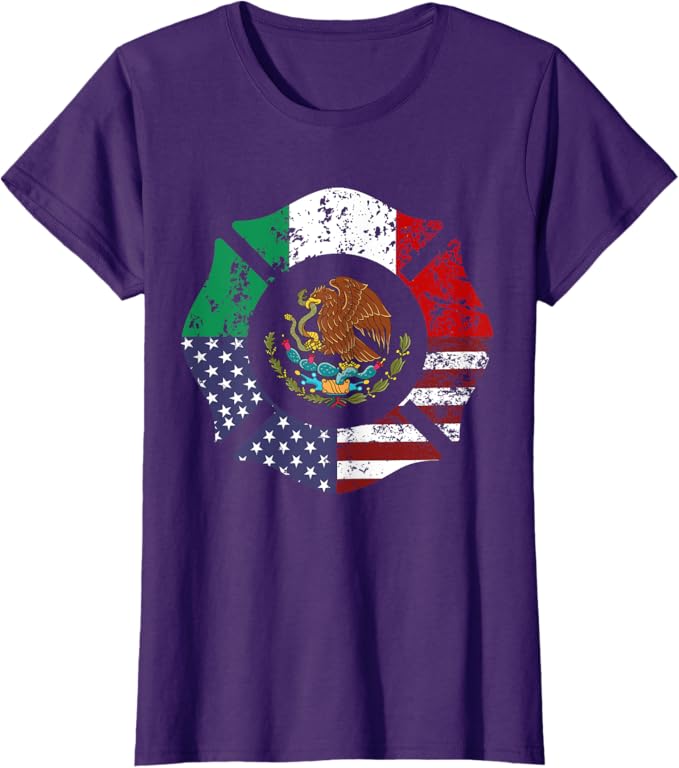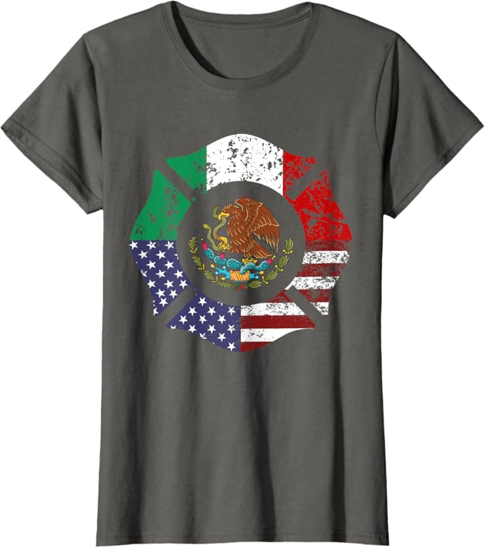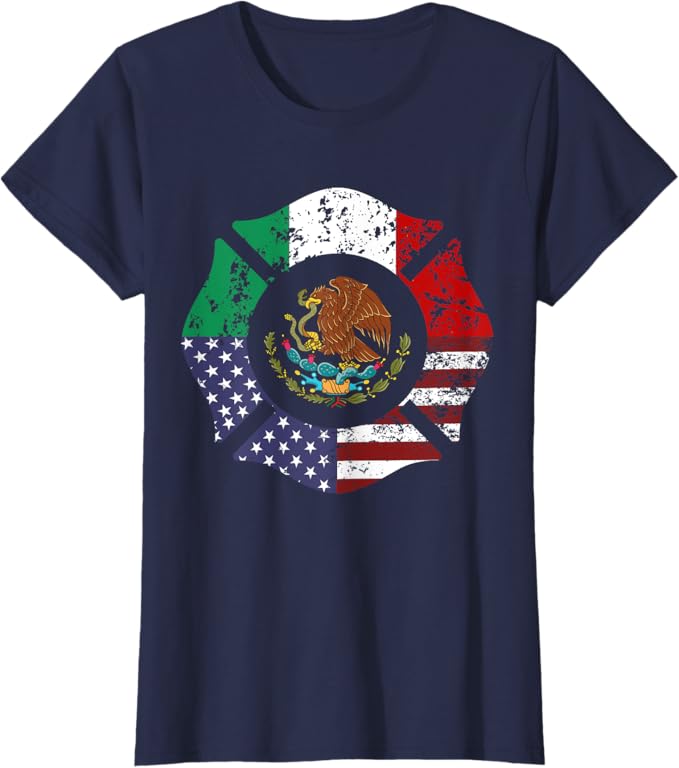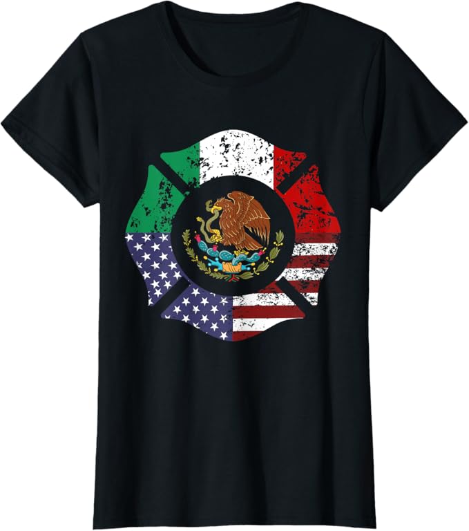 USA & Mexico Flag Women T-Shirt – American & Mexican Escudo Nacional Design