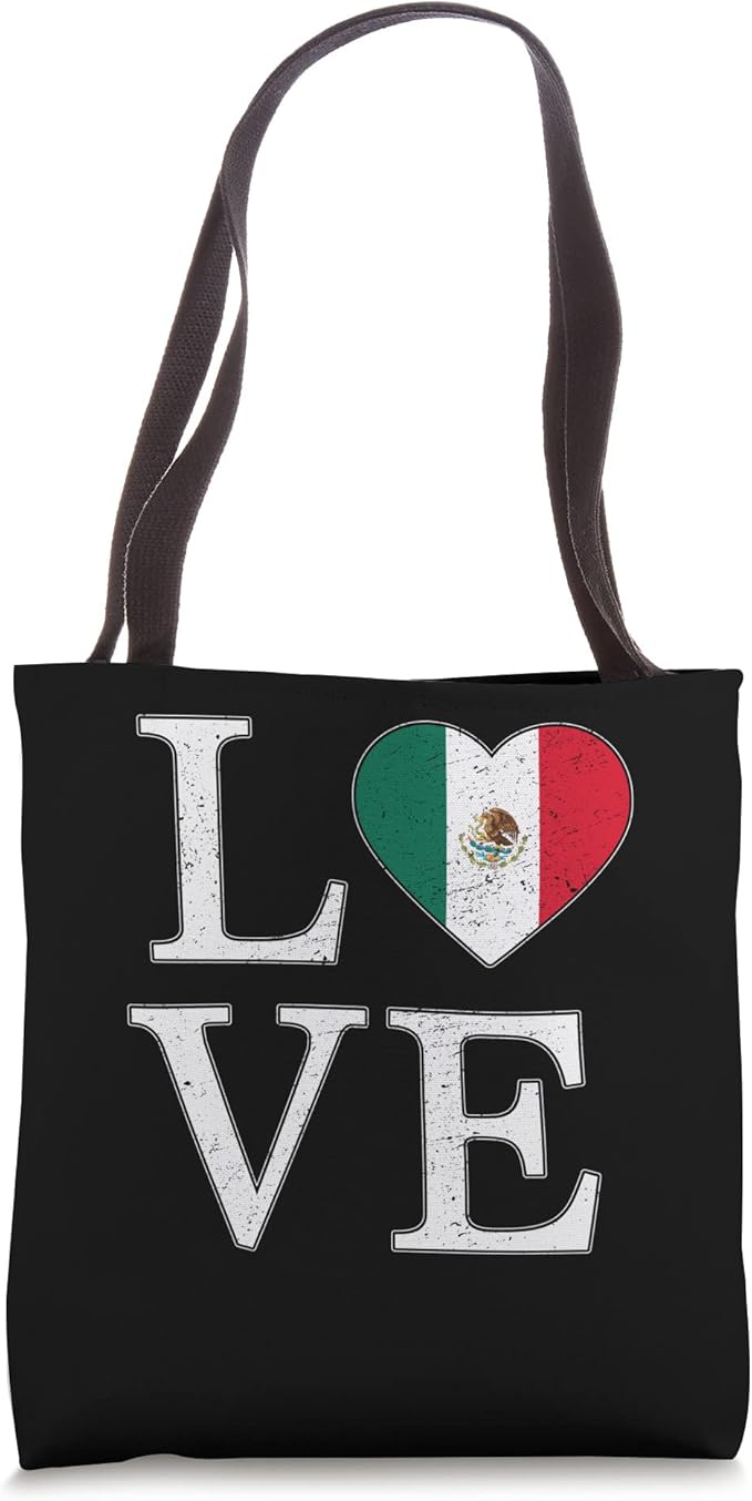 Mexico Love Mexican Flag Heart Tote Bag – Vintage Style
