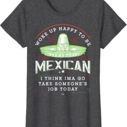 - Celebrating Mexican Pride: This “Woke Up Happy To Be Mexican” design is perfect for proud Mexican men and women who embrace their heritage and love Chicano culture.
