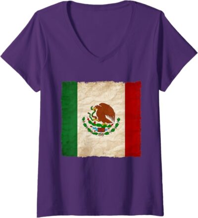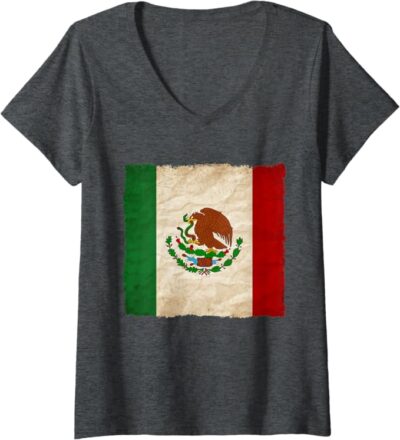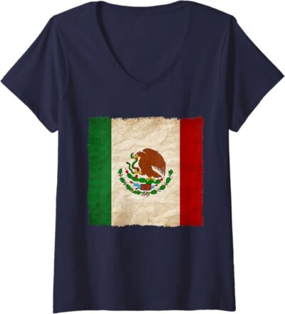 Vintage Mexican Flag Women’s V-Neck Women T-Shirt – Mexico Pride Camiseta
