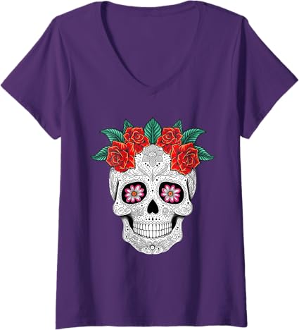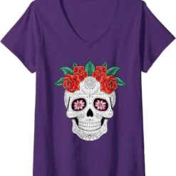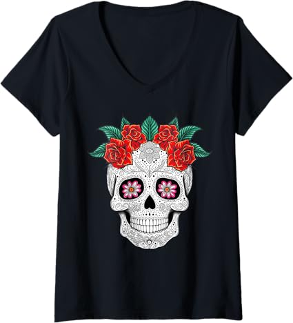 Be the first to review “Women’s Day of the Dead Skull with Flowers Mexican Holiday V-Neck T-Shirt”