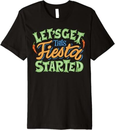 - Celebrate Cinco De Mayo in Style: Featuring a fun and festive “Let’s Get This Fiesta Started” design, this shirt is perfect for showing your Mexican pride at any Cinco De Mayo celebration or Mexican-themed party.