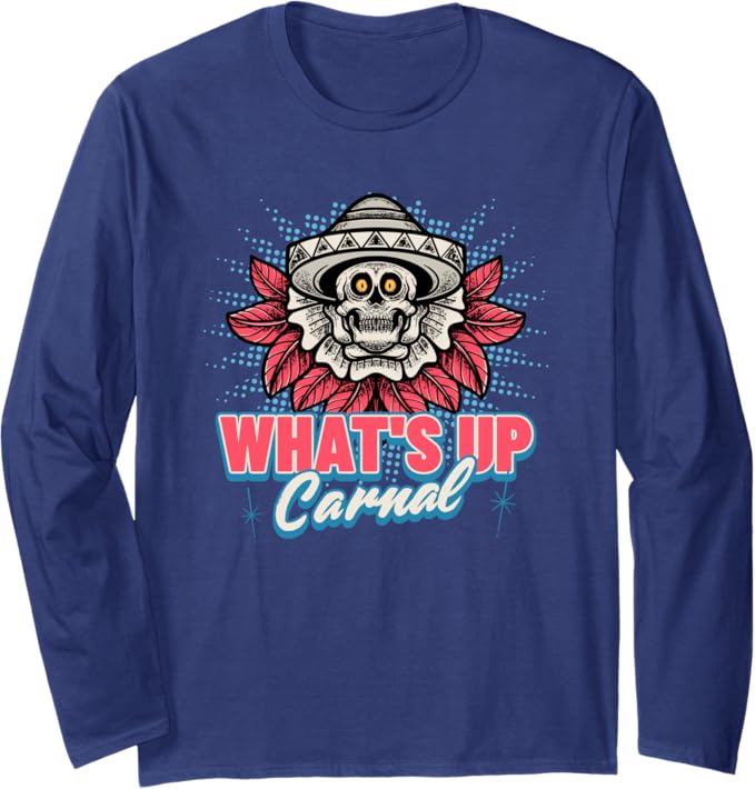 What’s Up Carnal Funny Mexican Skull Chicano Long Sleeve T-Shirt for Men and Women