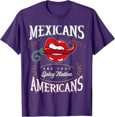 • Humorous Chicano Pride Design: Show off your sense of humor and pride in your heritage with this “Mexicans Are Just Spicy Native Americans” design, perfect for those who embrace Chicano culture.