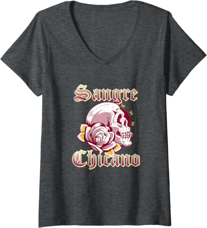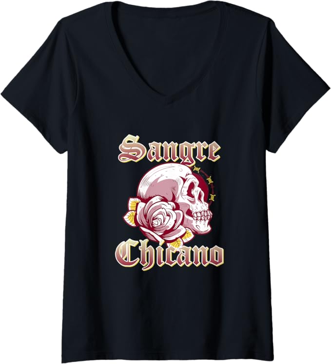 Women’s Sangre Chicano Vintage Retro Mexican Skull Hombre V-Neck Women T-Shirt