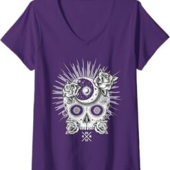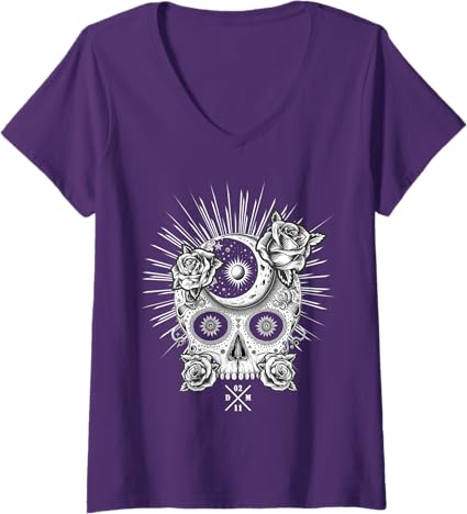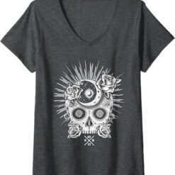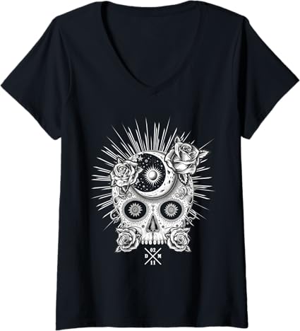 Women’s Mexican Sugar Skull V-Neck T-Shirt | Día De Los Muertos Occult Design