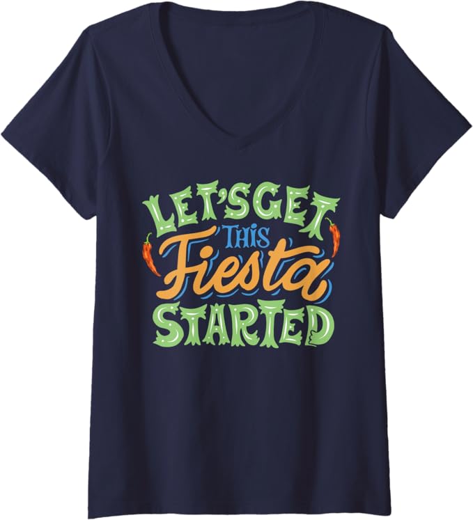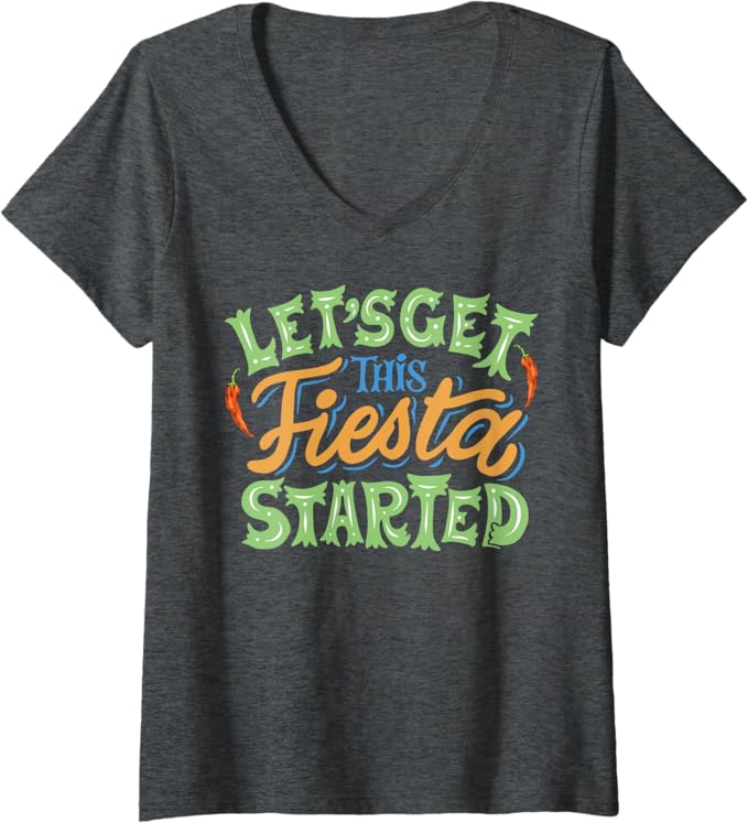 “Let’s Get This Fiesta Started” Cinco De Mayo Design: Featuring the bold and playful phrase “Let’s Get This Fiesta Started,” this t-shirt is perfect for anyone ready to kick off the fun and celebration of Cinco De Mayo.