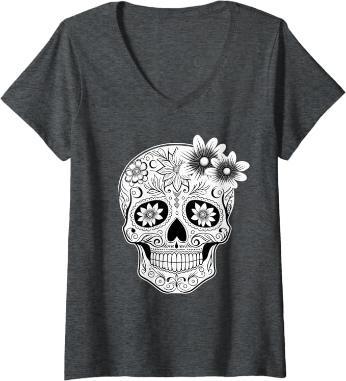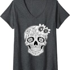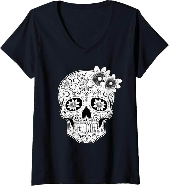 Women’s Dia De Los Muertos Mexican Skull Calaveras V-Neck Women T-Shirt