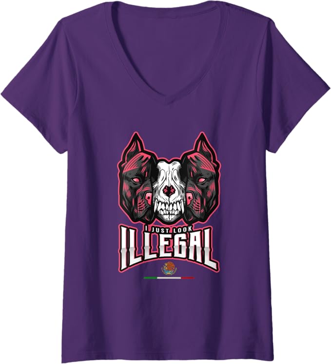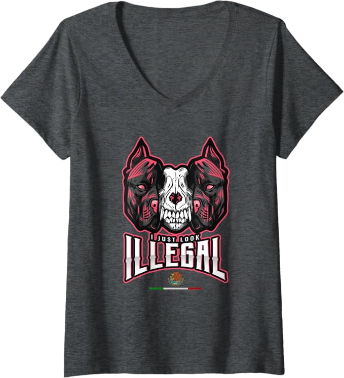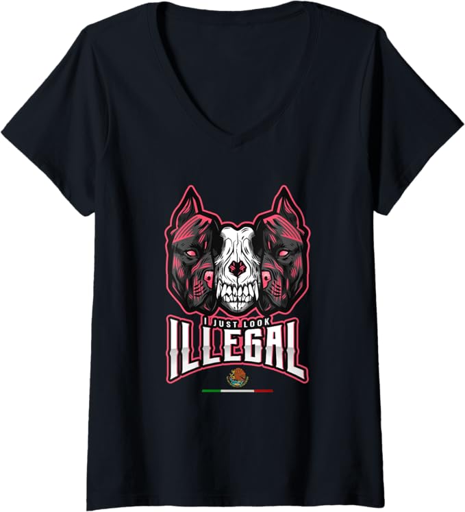 Women’s ‘I Just Look Illegal’ Creepy Mexican Dog Skull Chicano V-Neck Women T-Shirt