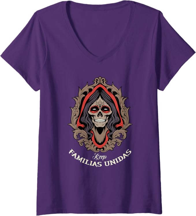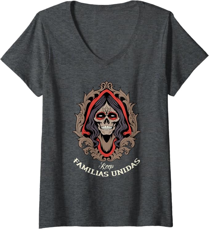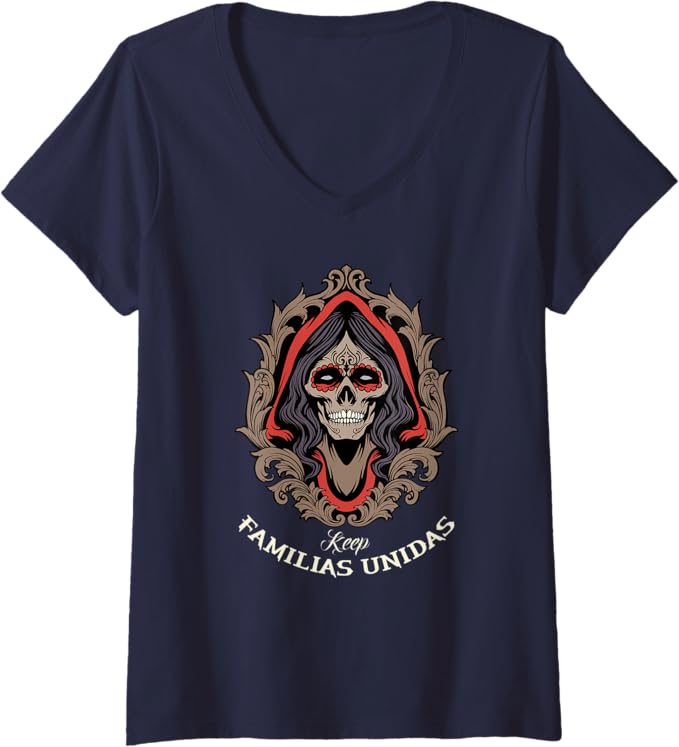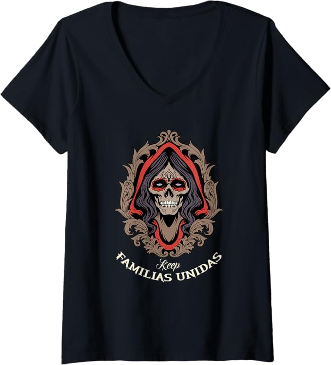 Women’s Keep Familias Unidas Mexican Calaveras Skull Chicano V-Neck Women T-Shirt – Bold & Unique Design
