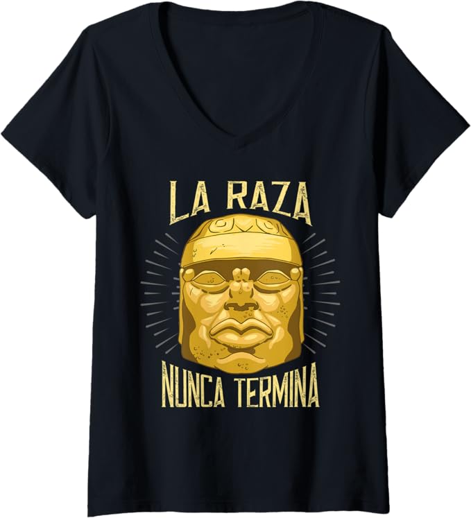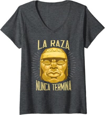 Women’s La Raza Nunca Termina Mexican Culture Chicano Pride V-Neck Women T-Shirt – Celebrate Heritage & Identity