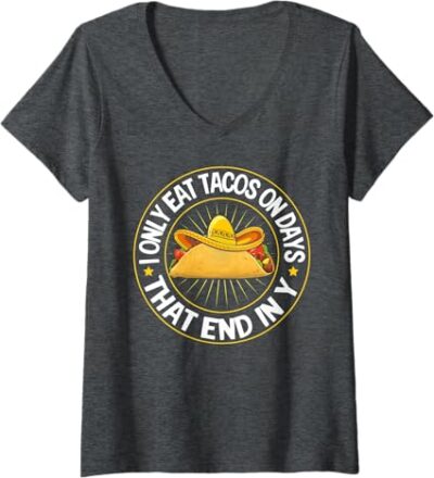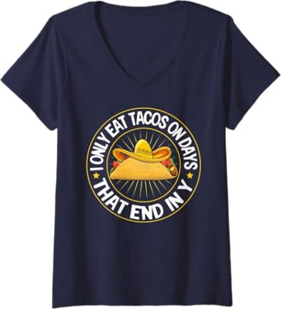 Women’s Mexican Cinco de Mayo Tacos V-Neck T-Shirt – Festive Party Apparel