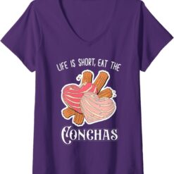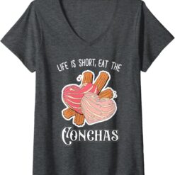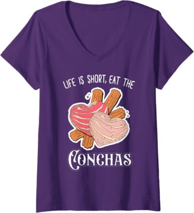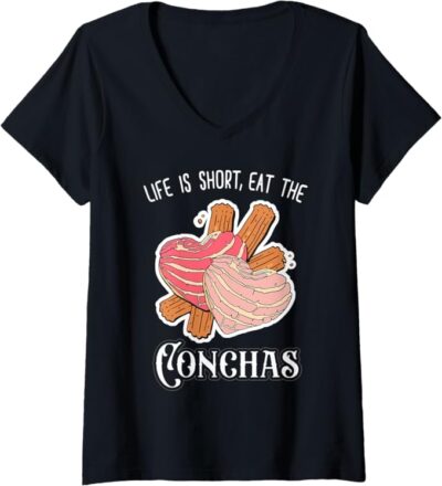 Women’s ‘Life Is Short, Eat The Conchas’ Funny Mexican Chicana V-Neck Women T-Shirt