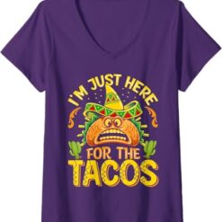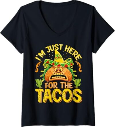 Women’s Mexican Cinco de Mayo ‘Just Here for Tacos’ V-Neck T-Shirt