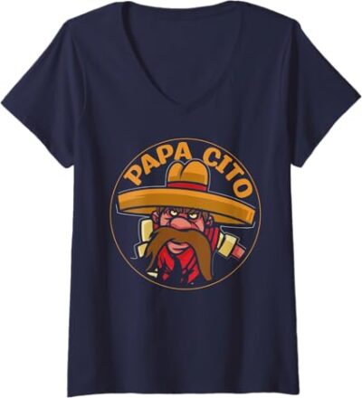 Women’s Mexican Cinco de Mayo Party Papa Cito V-Neck T-Shirt – Festive & Stylish Top for Celebrations