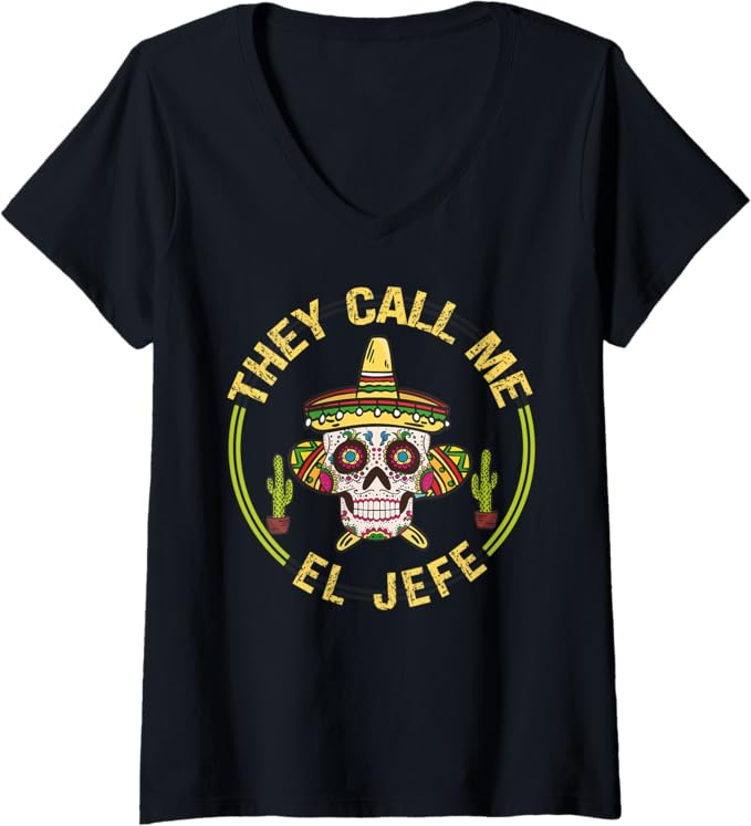 Womens Mexican Party Sombrero Skull V-Neck T-Shirt – Cinco De Mayo Style