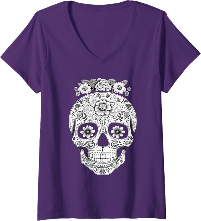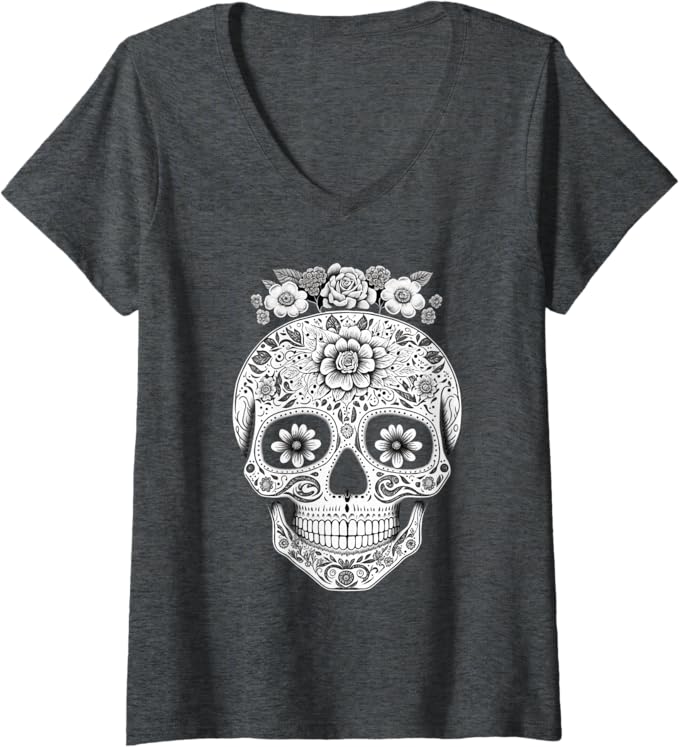 Women’s Mexican Skull V-Neck Women T-Shirt – Camisas de Calaveras