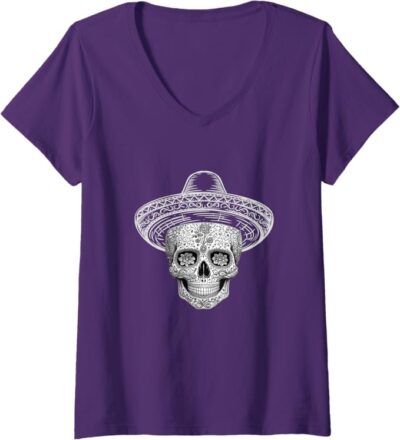 Be the first to review “Women’s Mexican Sugar Skull Sombrero Day of the Dead Calaveras V-Neck Women T-Shirt”