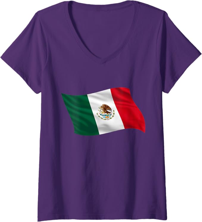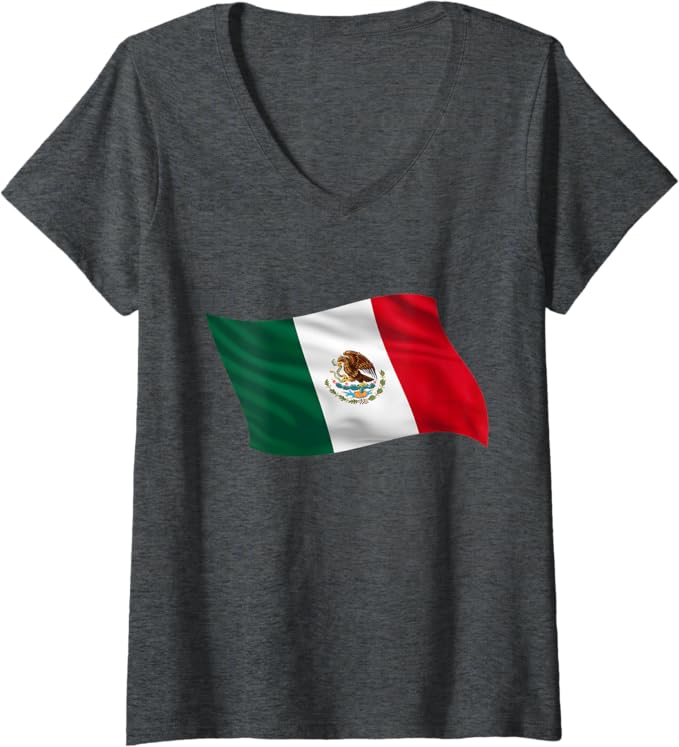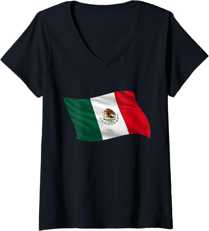 Women’s Mexico Bandera V-Neck Women T-Shirt – Mexican Flag Graphic Tee